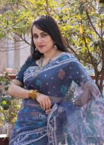 Timeless beauty in every fold! Adorn yourself in the captivating allure of Charu pallis saree. Immerse yourself in the exquisite beauty of the Dhakai Jamdani saree, a true icon of Bangladeshi heritage. Handwoven with meticulous precision, each saree showcases intricate patterns and delicate motifs, often inspired by nature and traditional designs. The fine craftsmanship and luxurious fabric make the Dhakai Jamdani a coveted choice for special occasions and everyday elegance. Metarial 👉 84 count. Half silk Color 👉 Ash Blouse 👉Yes with blouse Care 👉 Only katawash( Do it by Tati)