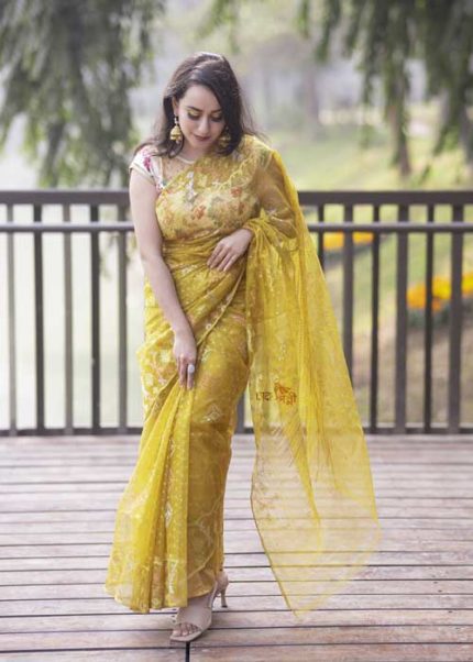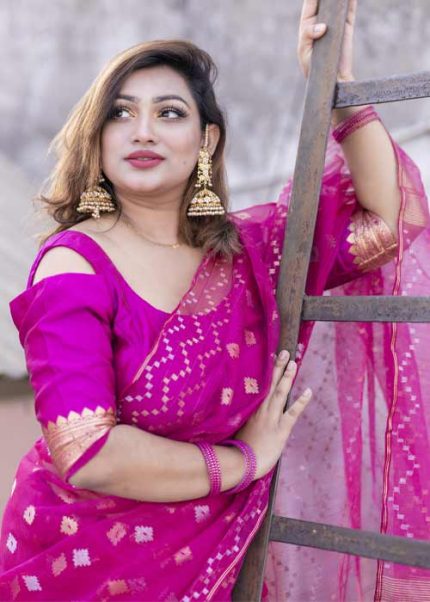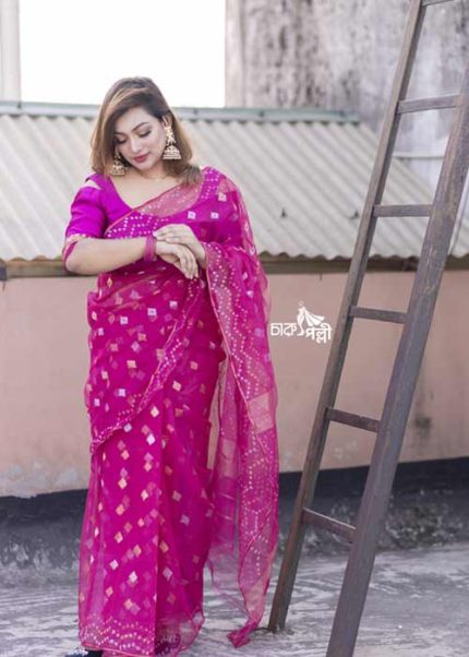 The fine craftsmanship and luxurious fabric make the Dhakai Jamdani a coveted choice for special occasions and everyday elegance.