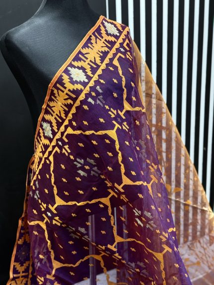 The fine craftsmanship and luxurious fabric make the Dhakai Jamdani a coveted choice for special occasions and everyday elegance.